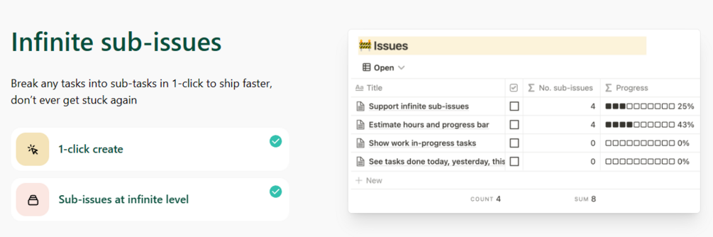 Break any tasks into sub-tasks in 1-click to ship faster, don’t ever get stuck again